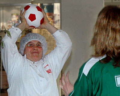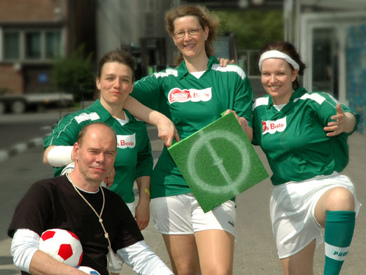 Auch das Frauenfußballteam des Theaterstücks erfährt zum Schluss, durch die aktive Einbeziehung der Werksfrauen, eine echte Verstärkung. So springt die Belegschaft ein und bringt die entscheidenden Bälle ins Spiel.