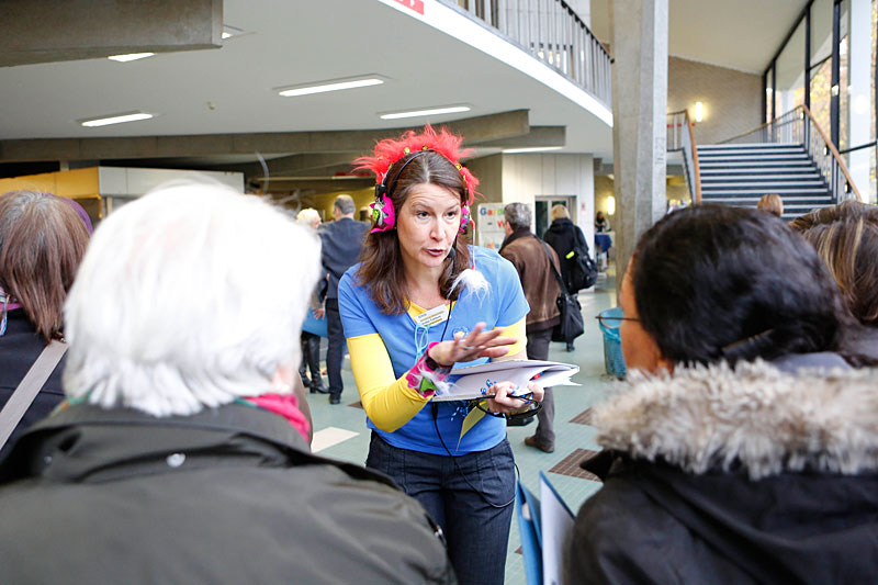 Und damit – trotz Hörsaal – das eigene Erleben und der Austausch nicht zu kurz kommen, hat KALEIDOSKOP ein Gesamtkonzept entwickelt, in dem spielerische Aktionen, inspirierende Vorträge und Dialog-Zeiten Bestandteil sind und durch lebendige Moderation zusammengehalten wird. Und natürlich präsentieren die SchauspielerInnen auf der großen Bühne des Audimax die gefundenen Thesen!