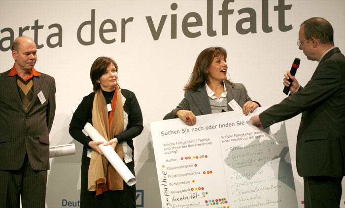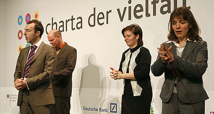 Mit Unterstützung der Beauftragten der Bundesregierung für Migration, Flüchtlinge und Integration, Staatsministerin Prof. Dr. Maria Böhmer, haben die Unternehmen Daimler, Deutsche BP, Deutsche Bank und Telekom im Dezember 2006 die Charta der Vielfalt ins Leben gerufen, die schon von über 240 Unternehmen und öffentlichen Einrichtungen unterzeichnet wurde.